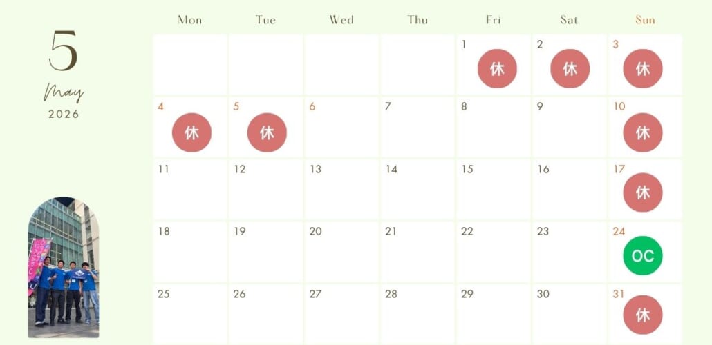 曜日:月曜日~土曜日(祝日を除く)
