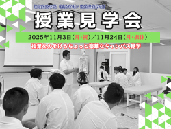 11/3(月・祝)および11/24(月・振休)は通常授業を行っているため、特別に『保健医療学部・授業見学会』を開催します。