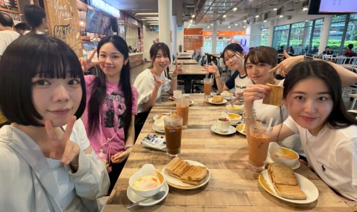 また、カヤトーストをはじめとするローカルフードも存分に味わいました。ホーカーセンターでは、中華料理やマレー料理、ベジタリアンなど、多様なお店が並び、多様な食文化が共存するよう配慮されています。また、さまざまな人々が集まり、交流する場としての役割も担っており、多民族国家ならではの取り組みに触れることができました。