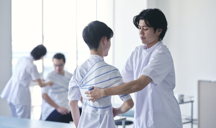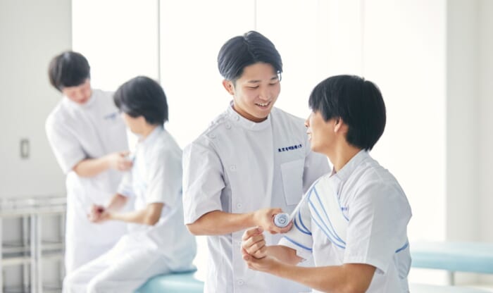 柔道整復師が骨折、脱臼、打撲、捻挫などに対して応急処置や施術を行います。