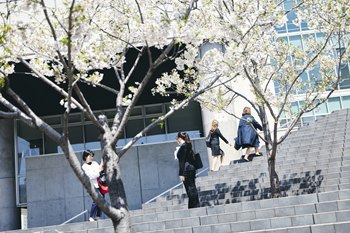 当日は朝から晴天に恵まれ、穏やかな天候のもと開式を迎えました。キャンパス内の桜も満開となり、新入生の入学を祝福していました。